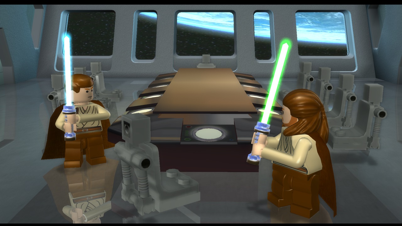 - Игра охватывает сразу шесть фильмов из серии «Звездных войн», где предоставлены сразу все персонажи и задания из обеих трилогий.