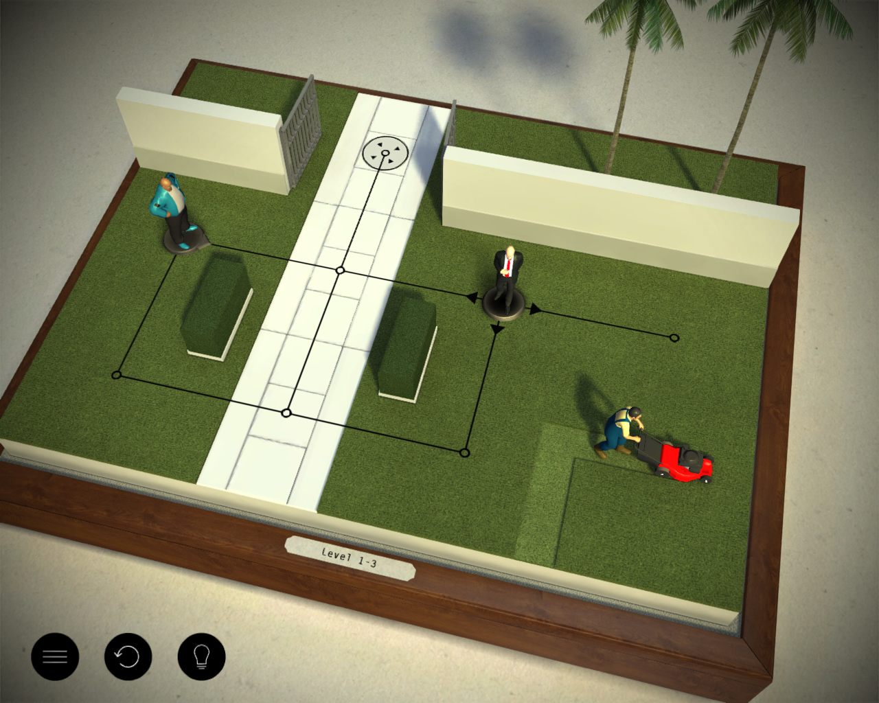 Помимо стоящих статично сини охранников, есть и те, которые патрулируют область, они передвигаются по заданному маршруту, патрулируют территорию. С ними справиться гораздо сложнее, ведь нужно подловить его на нужной точке. Графика в игре очень интересная, тут все стилизовано под настольную игру. Сам Хитман, охрана и цель задания выглядят как пластмассовые фигурки для настольной игры. Карта же в свою очередь также выполнена в соответствующем стиле. Все это навевает мысли о старой доброй настольной игре, где можно было зависнуть часами.