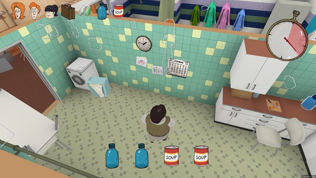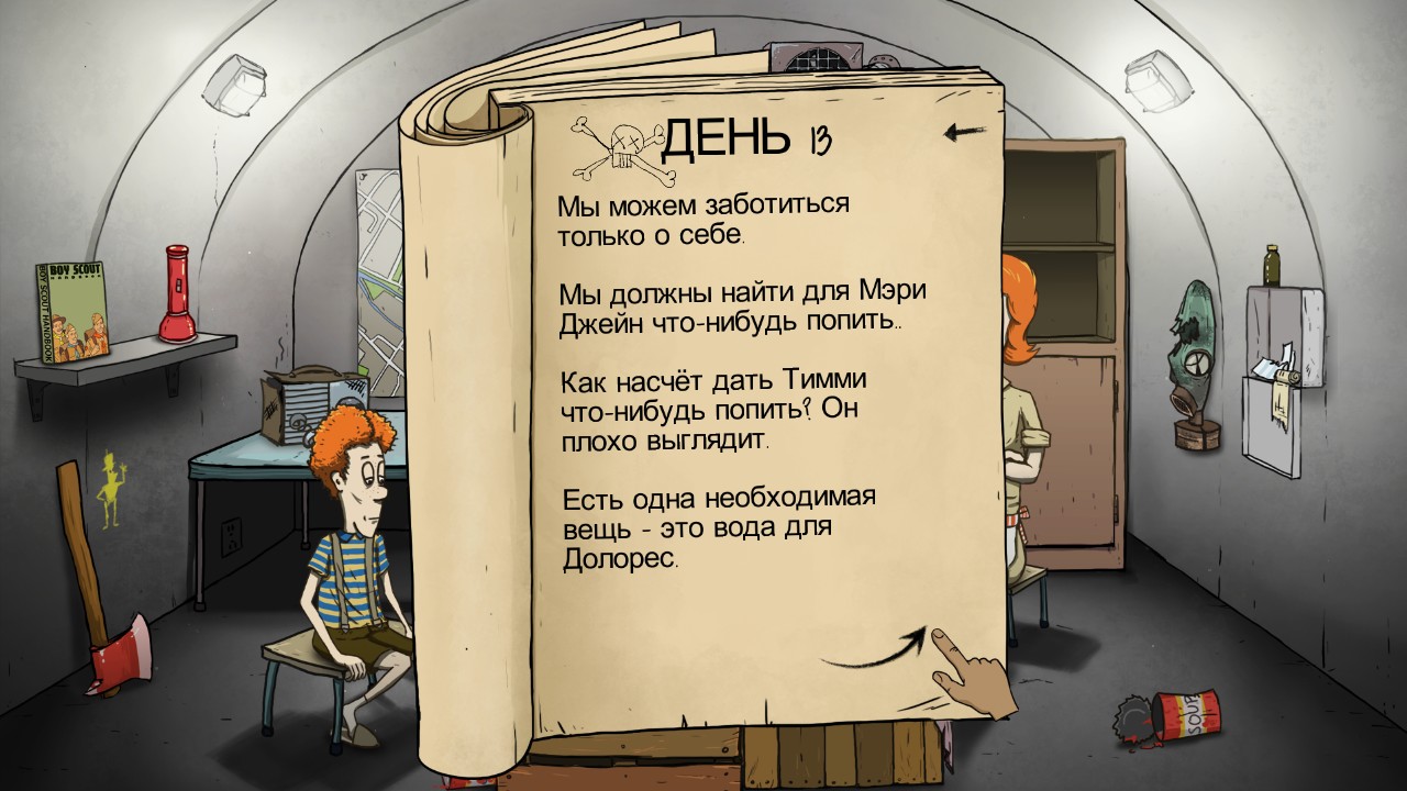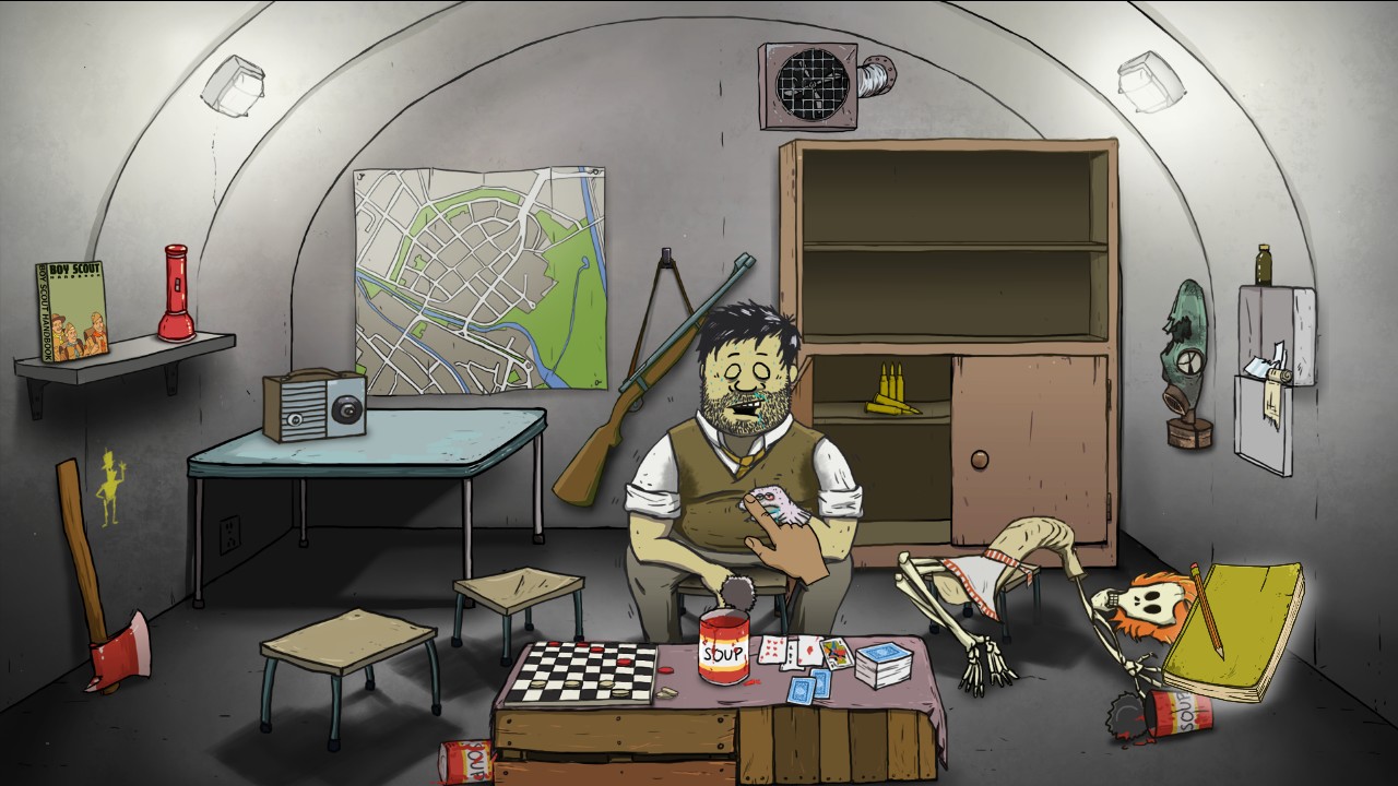 В начале игры у вас есть всего 60 секунд для того, чтобы взять из дома все самое необходимое и отправиться в бункер. Эти 60 секунд играют очень важную роль, ведь в каком-то смысле именно от них зависит, сколько времени вы сможете прожить в бункере. Вначале будет сложно предугадать, какие предметы вам понадобятся в бункере, а какие окажутся бесполезными. После того, как вы собрали все необходимое, действие игры будет происходить в бункере. И вот здесь и начнется все самое интересное, ведь в зависимости от того, какие вещи вы взяли с собой, в бункере будут происходить довольно ироничные ситуации. По ходу игры вы сможете выбираться на поверхность. Найти что-то полезное в руинах разрушенного города сложно. Но возможно вам повезет. Только будьте осторожны, ведь повышенный радиационный фон может запросто убить вас или превратить в зомби. Пытаясь выжить, вам придется столкнуться со множеством трудностей. Вашей семье будет постоянно не хватать еды или теплых вещей. Кто-то из членов семьи и вовсе под действием радиации может стать мутантом или даже зомби! Ну а каждый предмет, который вы взяли с собой в бункер из дома, может сыграть роль в конце сюжета. Причем предметы могут повлиять на сюжет и негативным образом. Так что прежде чем брать с собой в бункер какой-либо предмет, подумайте, а не будет ли впоследствии этот предмет причиной весьма печальных событий в игре. Собирайте полезные вещи, грамотно распределяйте их и позаботьтесь о том, чтобы ваша семья прожила как можно дольше. Возможно вам удастся пережить ядерную войну в этой игре.