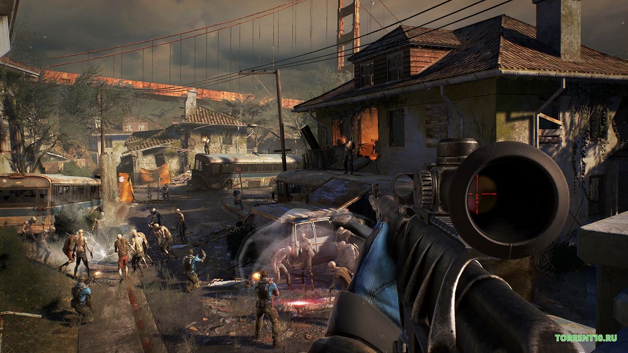 Dead Alliance 2017 скачать торрент динамичной игры, которая способна увлечь абсолютно любого пользователя ПК и забрать в свой мир надолго. Шутер от первого лица способен изменить ваше мышление и видение стрелялок в 2020 году. Ваш город населен полчищами зомби и ходячими. Вам необходимо справиться с ними и выжить. Понятно, что в одиночку вы не справитесь. Для этого в игре был создан многопользовательский режим, рассчитанный на нескольких игроков одновременно. Серверы никогда не глючат, не провисают, а благодаря обновлениям и регулярным DLC, мы получаем качественную и потрясающую игру, которая работает стабильно и безукоризненно. Используйте все возможные оружия, которые только встретите по пути. Также, в бою против других противников (со всего мира) можно пользоваться некоторыми примочками и хитростями. Например, послать отряд зомби на вражеский лагерь. Пусть они всех там перебьют, а враги потратят на них свои патрону. И в следующий раз вам будет легче их перебить. Выберите оружие, которое вам по духу. Это может быть обычный пистолет, автомат, пулемет, или что-нибудь похлеще, по типу гранатомета или огнетушителя. Сразитесь с вражескими артиллерийскими зарядами, прячьтесь за ходячими мертвецами и побеждайте.